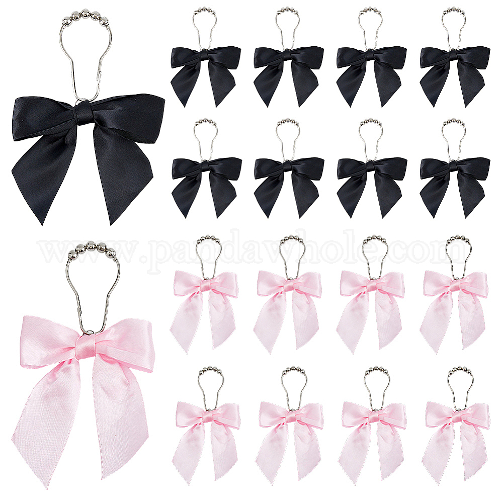 24шт 2 цвета железные кольца для душевой занавески для ванной комнаты, бантом, легко скользящие ролики, металлические вешалки для душа с бусинами, платина