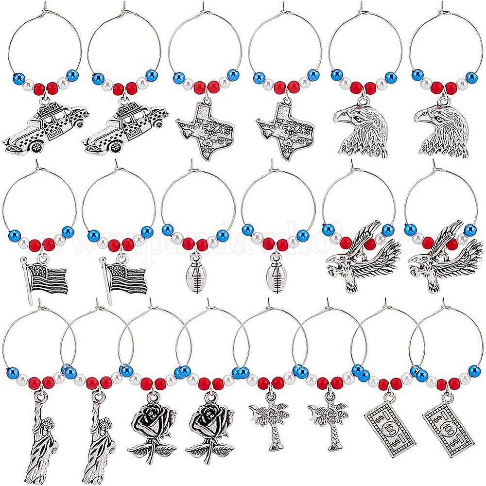 20 шт. 10 стили подвески в виде национального флага, долларовых купюр, орла и розы из сплава для бокалов вина со стеклянным жемчугом, латунные серьги обруча (02CWTR)