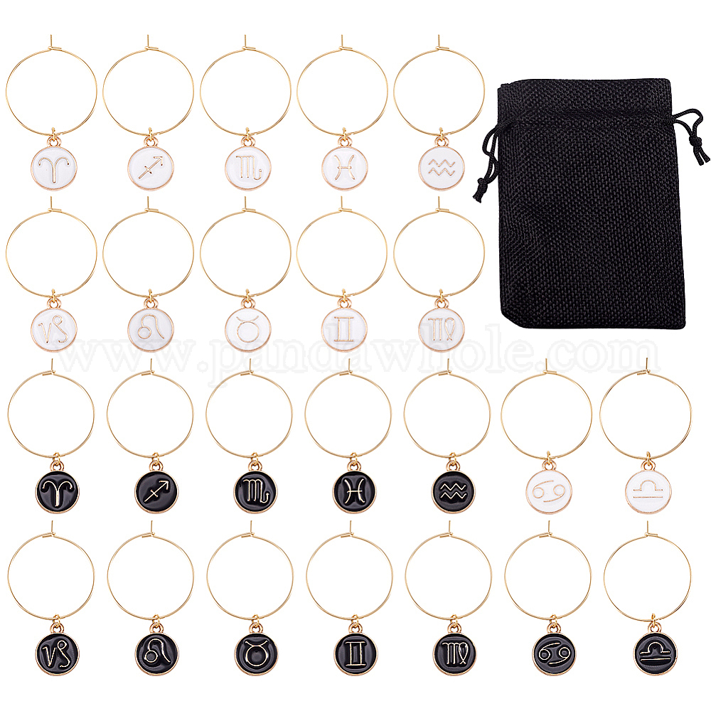 24шт 24 стиль сплава эмали подвески для бокалов, с 316 фурнитурой для сережек из хирургической нержавеющей стали, плоский круг с двенадцатью созвездиями