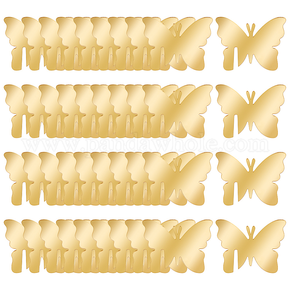 • Золотистый 40 шт. зеркальные акриловые подвески для бокалов для вина, бокал маркер, бабочка, золотые, 40.5x54x1.6 мм