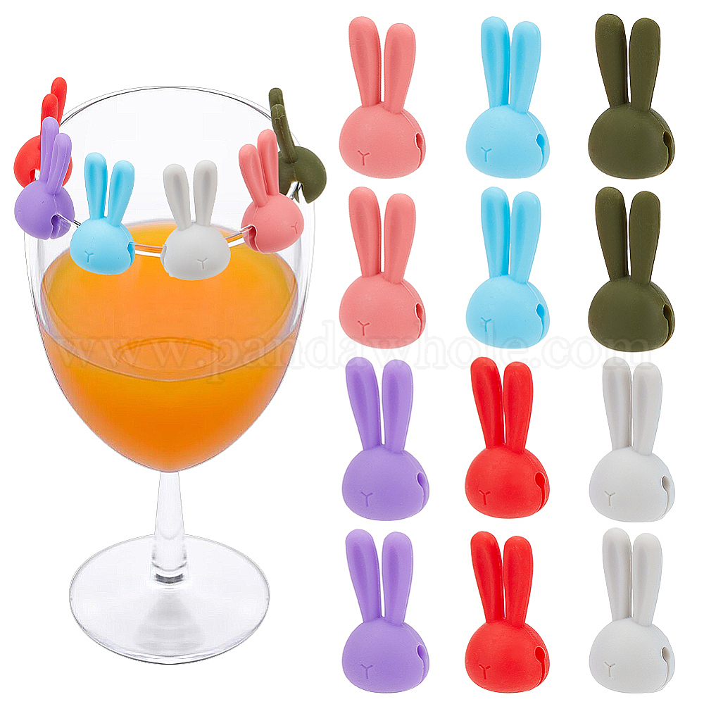 • (52) Непрозрачная лаванда 2 наборы 12шт. силиконовые подвески для бокалов в виде кроличьих ушей, бокал маркер, разноцветные, 32x17.5x15 мм, отверстие : 3 мм