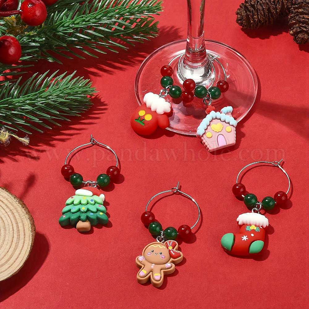 Рождественские окрашенные малайзийские нефритовые бусины для бокалов для вина, с прелестями смолы, латунное кольцо-подвеска для бокала для вина