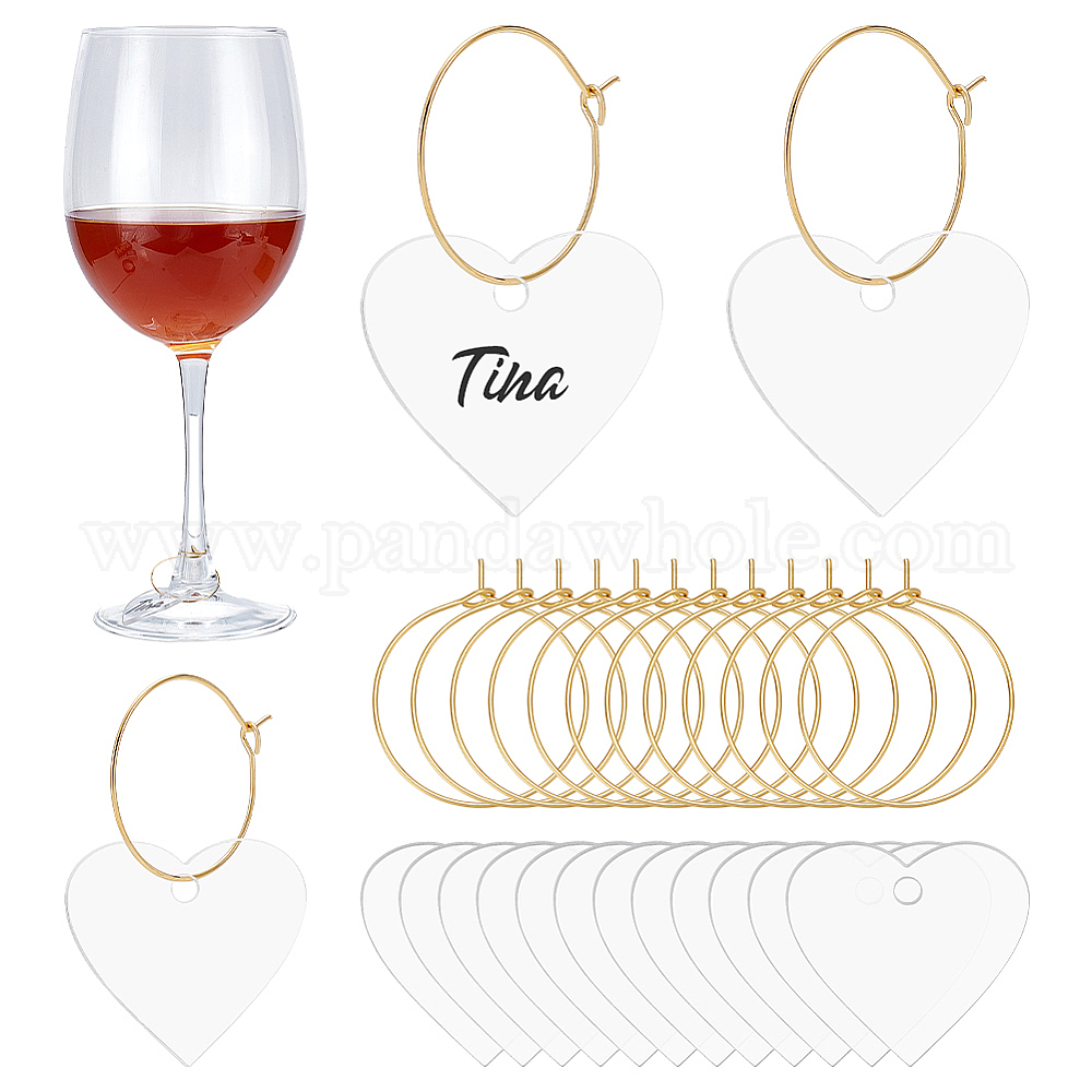 50шт. акриловое кольцо для этикетки на бокал для вина, сердце, с 50шт. латунной фурнитурой для серег-колец
