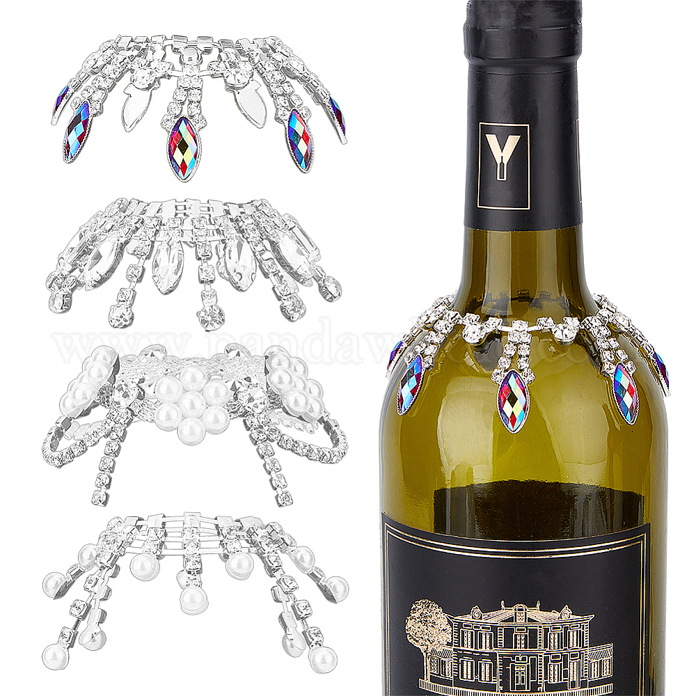 4 шт. стеклянные стразы цепочки для чашек подвески для бокалов, разнообразные