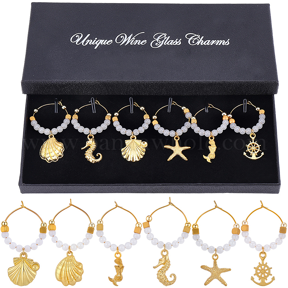 6шт. стеклянный бокал для вина, с подвесками из сплава и кольцами-шармами в виде бокалов для вина