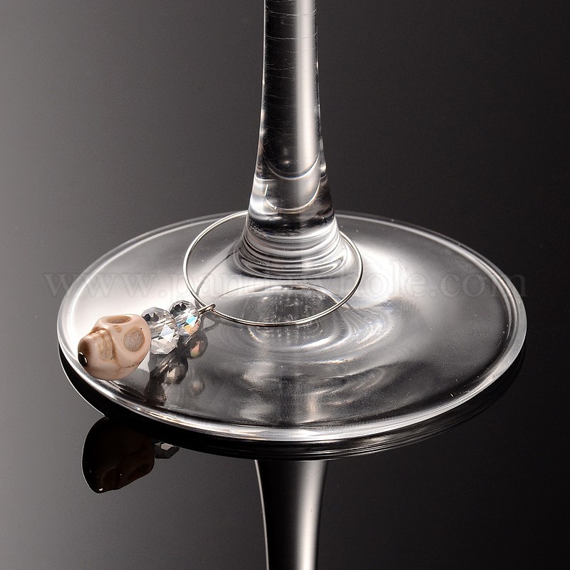 Хэллоуин череп синтетический Howlite бокал прелести, латунь обруч со стеклянными шариками, 61x30 мм