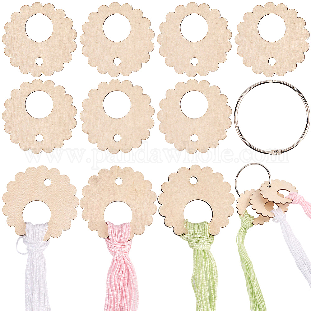 Деревянная катушка для ниток в форме цветка, доска для намотки швейных ниток, для хранения хлопковых ниток для вышивки крестом, с железными связующими кольцами на петлях
