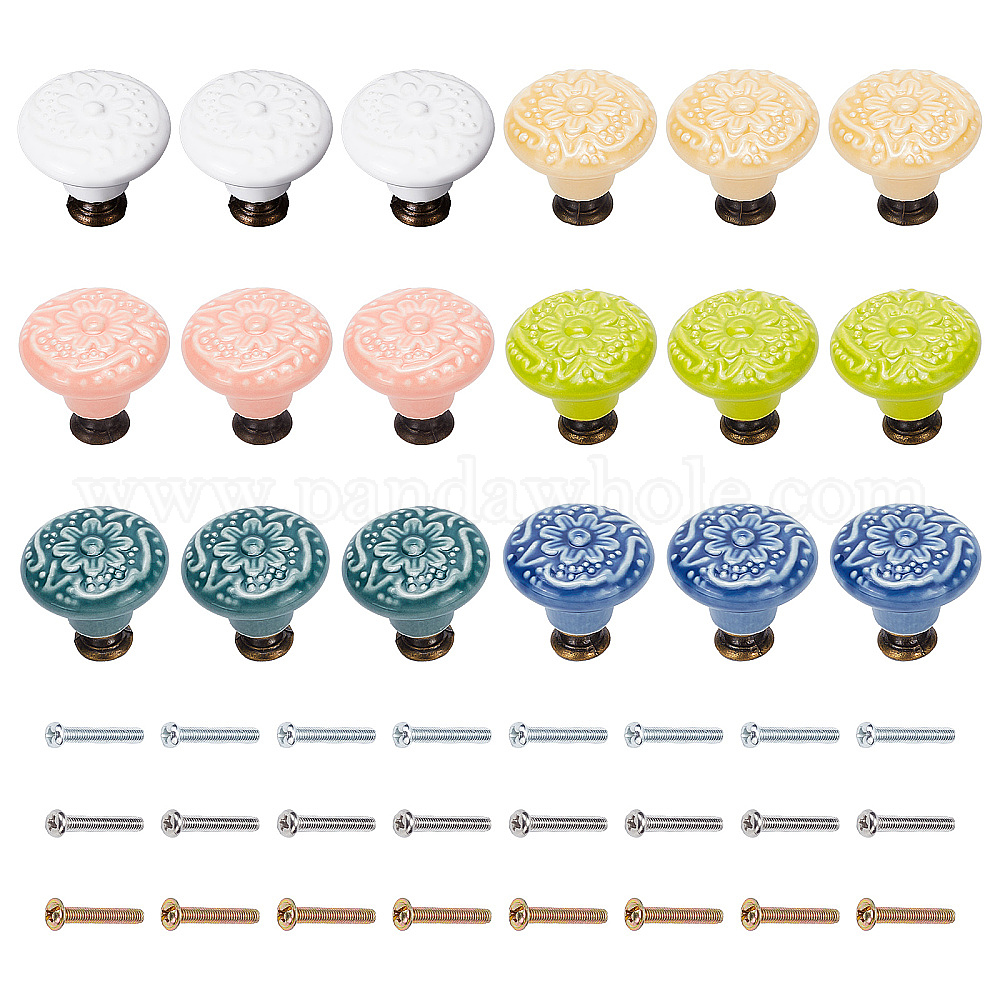 18шт 6 цветные круглые рельефные фарфоровые ручки для ящиков, дверные ручки шкафа, с винтами 18 шт.