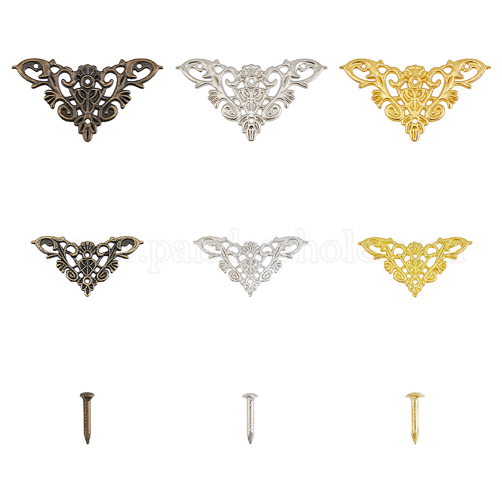 24 наборы 6 стильные защитные уголки для железных ящиков, с гвоздями, для мебели украшения шкатулки, цветок