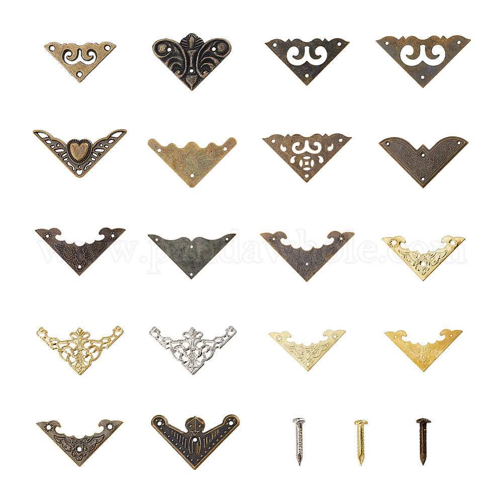 18 стили железный декоративный уголок для деревянного ящика, треугольник с летучей мышью/благоприятным облаком/бабочкой, с гвоздями