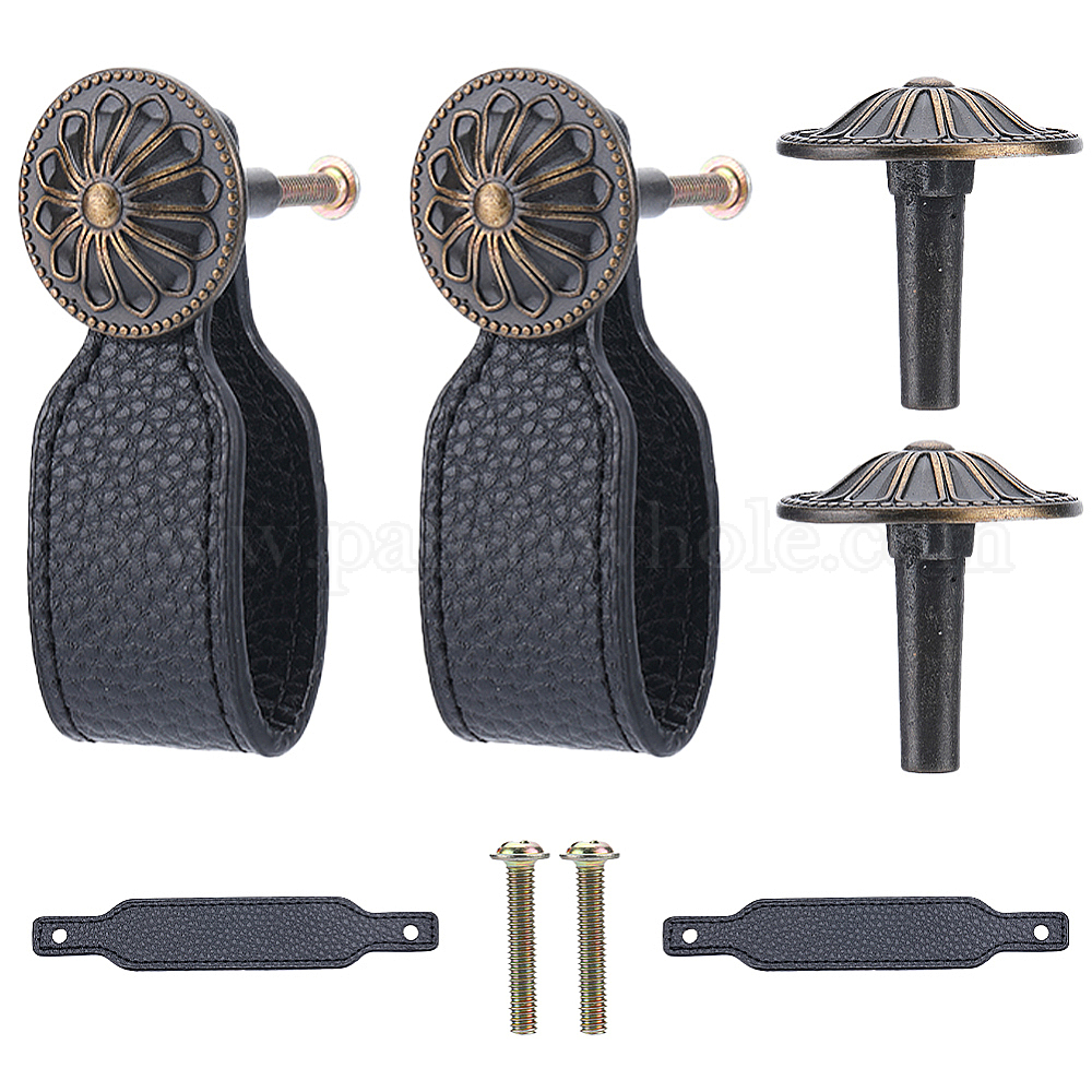 Ручки для ящиков из искусственной кожи, дверные ручки, ремень для шкафа, с пряжками и винтами из сплава
