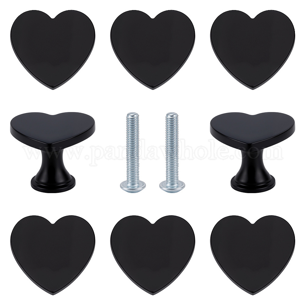 • Черный 8 ручки для ящиков из сплава в форме сердца, ящик выдвигает ручку, с железным винтом, для дома, кабинет, шкаф и комод, чёрные, 32x33.5x25 мм