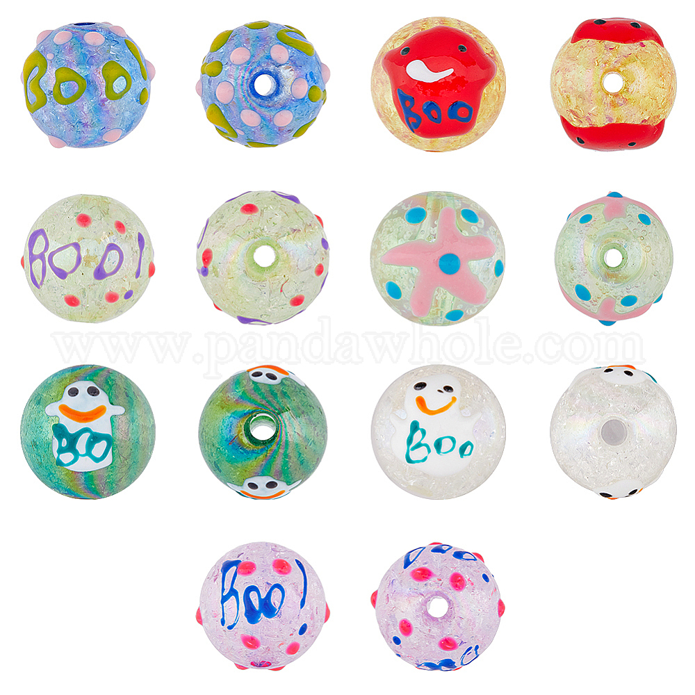 14 шт 7 цвета ab цвет прозрачный трещины акриловые круглые бусины, Хэллоуин призрачная бусина, с эмалью