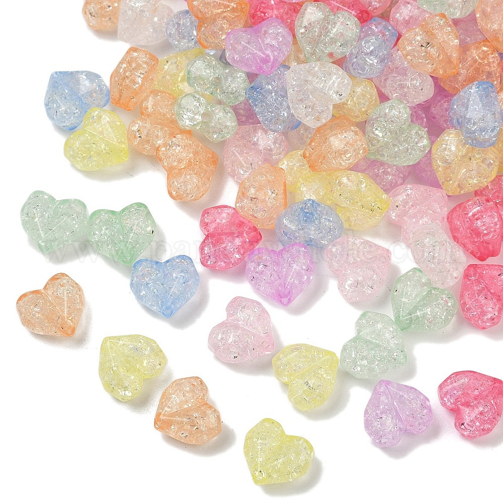 • (52) Непрозрачная лаванда Прозрачных бусин акриловые треск, сердце, граненые, разноцветные, 13x14.5x8.5 мм, отверстие : 2 мм, 833 шт / 500 г