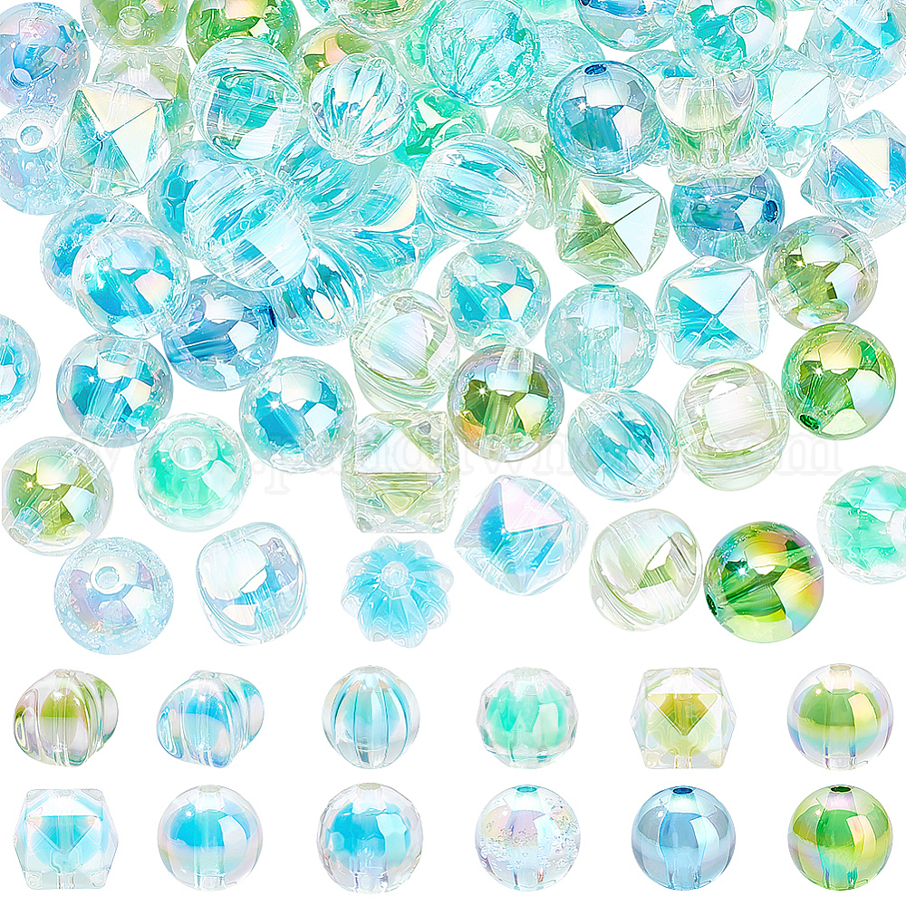 72шт 12 стили УФ-покрытие прозрачные акриловые бусины, круглый, многоугольный, прямоугольный и тыквенный