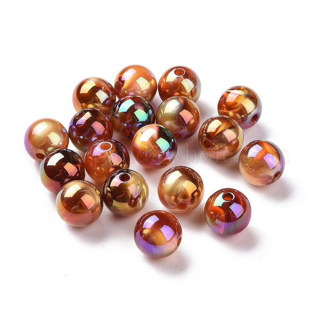 • Сиена УФ-покрытие радужными переливающимися акриловыми бусинами, золотой фольгой, круглые, цвет охры, 11.5 мм, отверстие : 2 мм