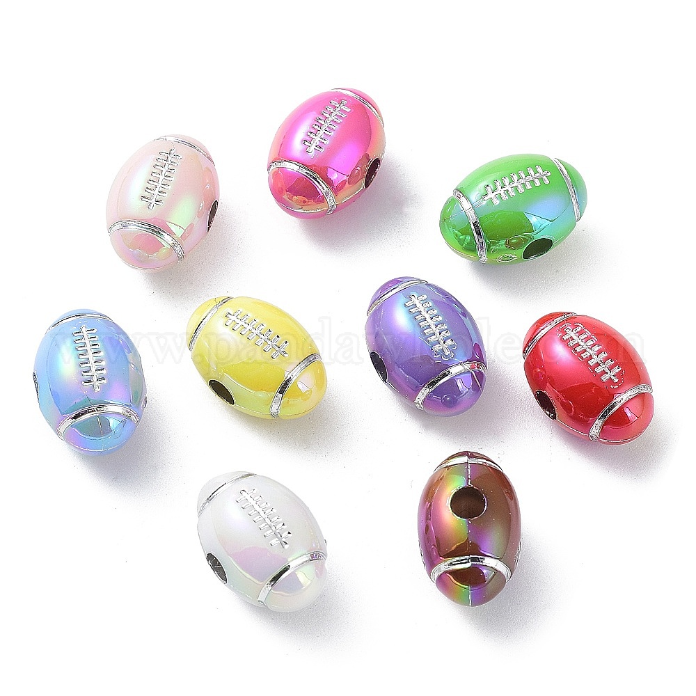 Непрозрачные акриловые бусины с УФ-покрытием, радужный, регби