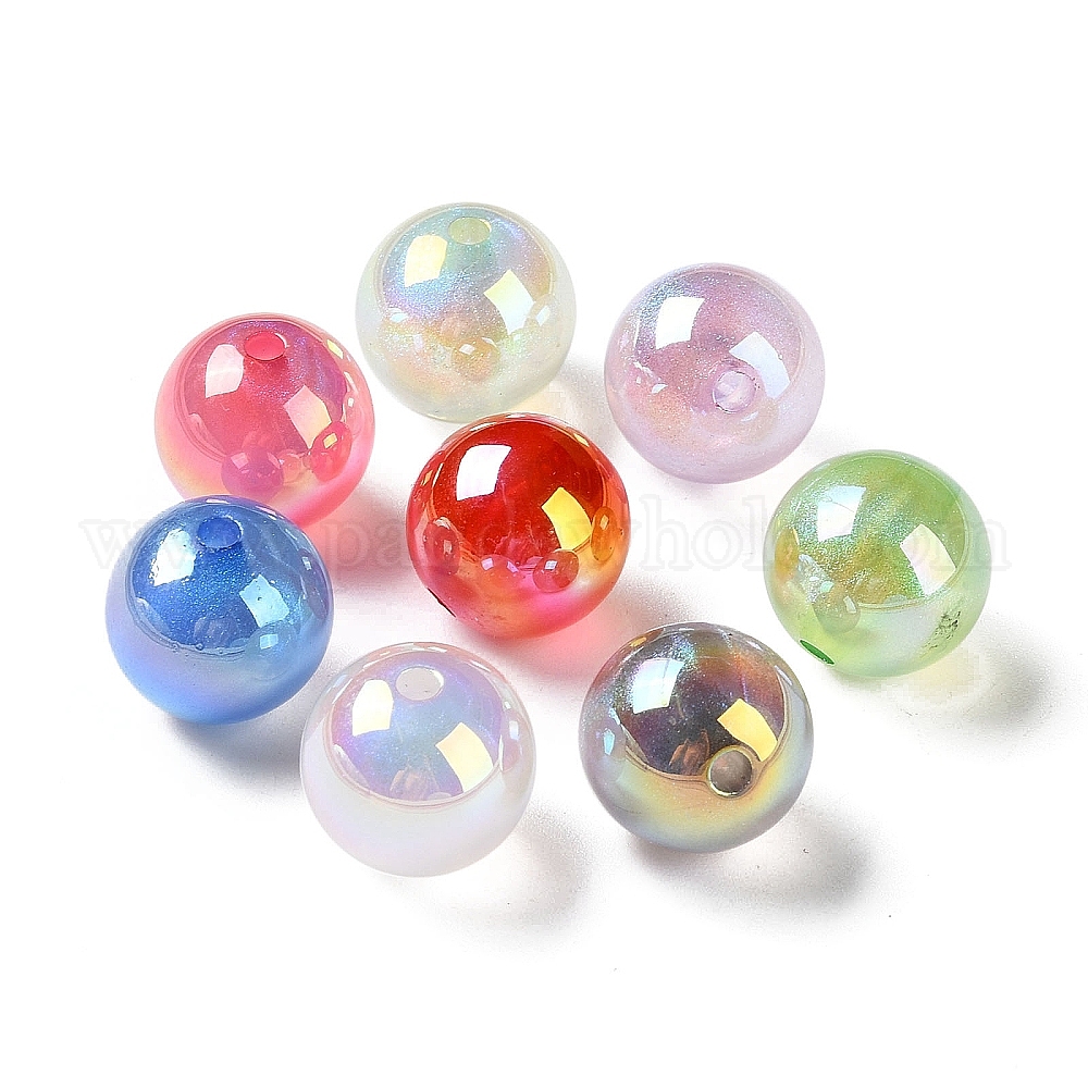 Акриловые бусины с кракелюром, уф-покрытием, AB цвет, круглые