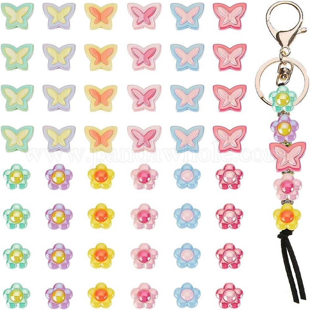 48 шт 12 стили покрытия акриловых бусин, цветок и бабочка