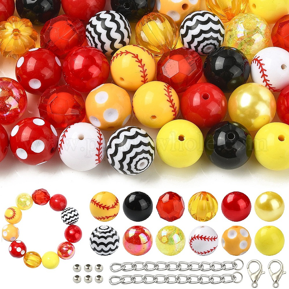 50шт. посадка акриловых бусин, горизонтальное отверстие, бейсбол