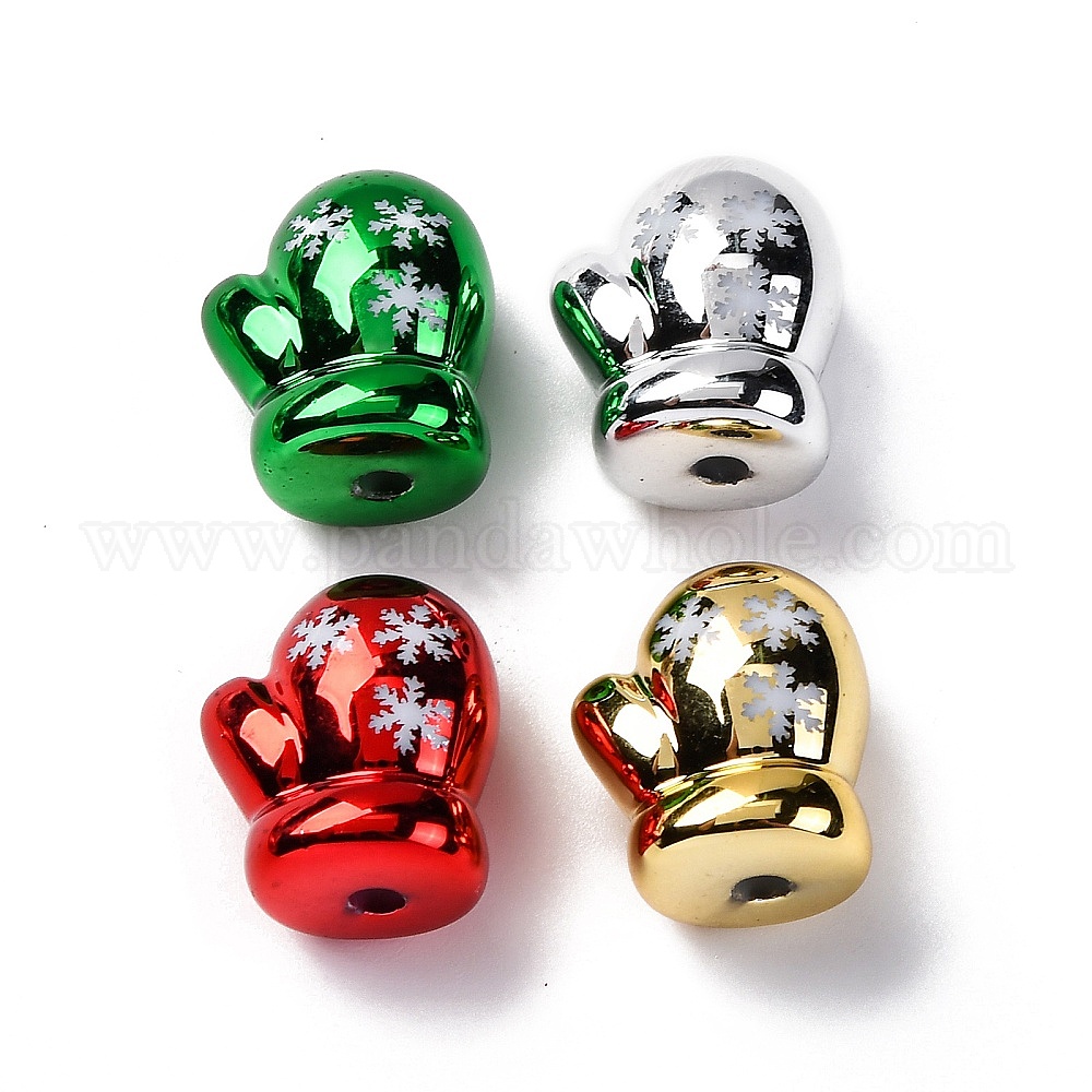 Рождественская тематика УФ-покрытие и напечатанные непрозрачные акриловые бусины, перчатка со снежинкой
