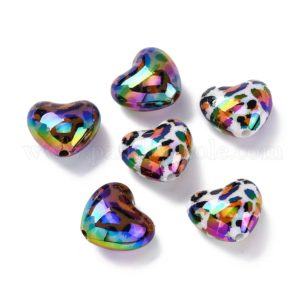 УФ-покрытие, переливающиеся и напечатанные непрозрачные акриловые бусины, сердце с леопардовым рисунком