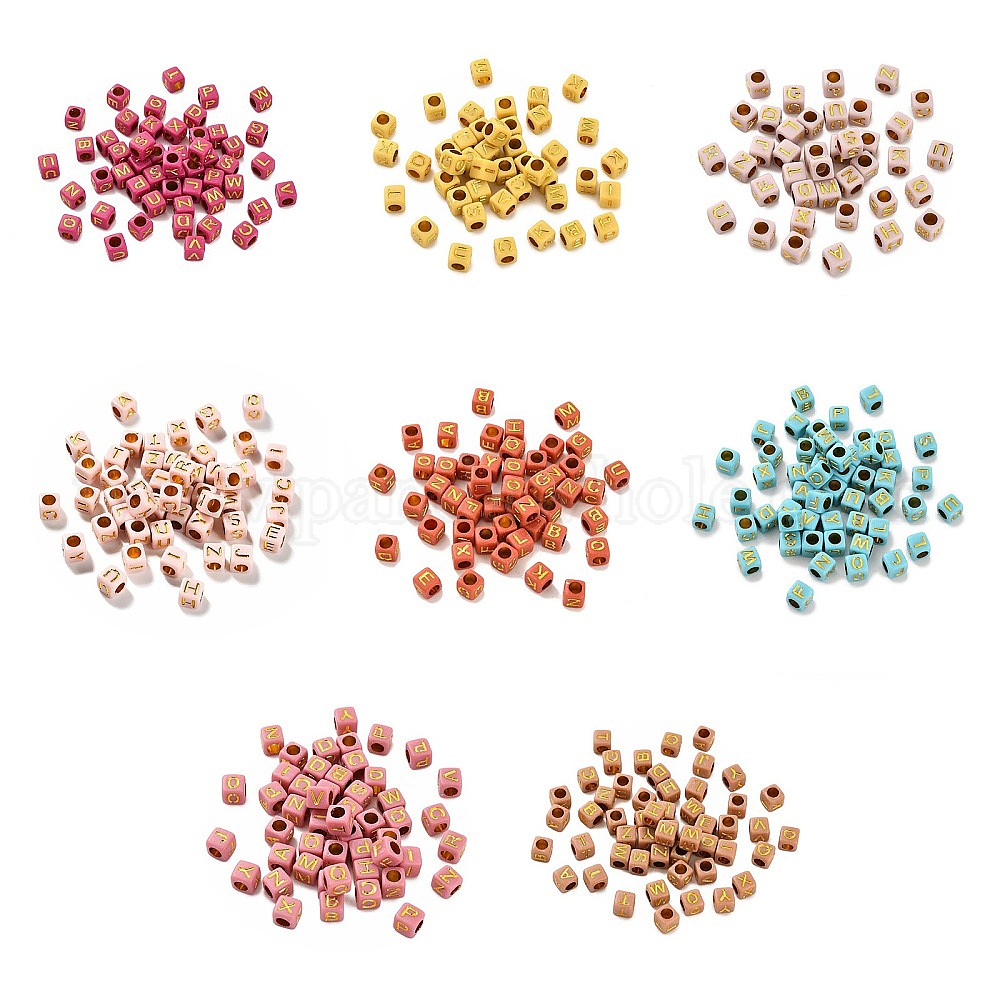 Непрозрачные акриловые бусины, куб с письмом, золотой металл обвитыми
