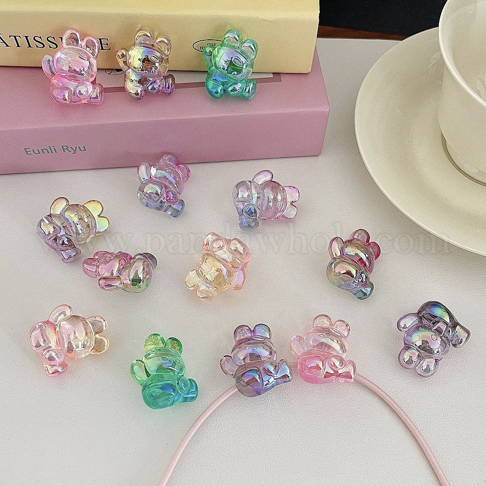 Уф-покрытие прозрачные акриловые бусины, радужный, кролик, градиент цвета