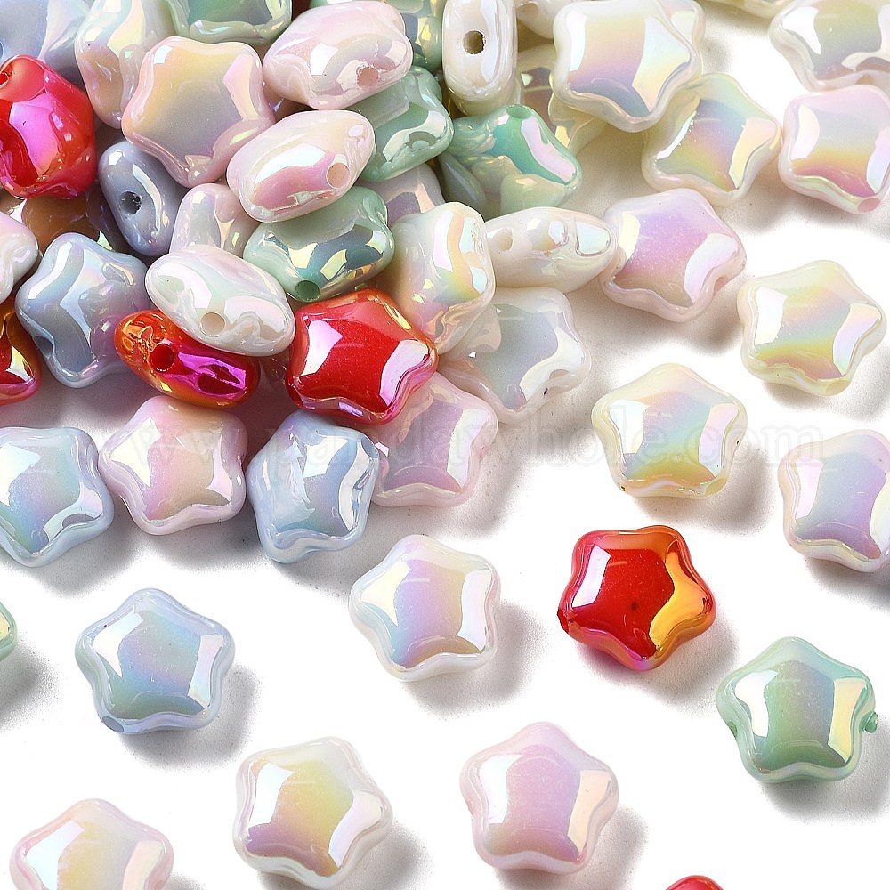 Непрозрачные акриловые бусины с УФ-покрытием, радужный, звезда