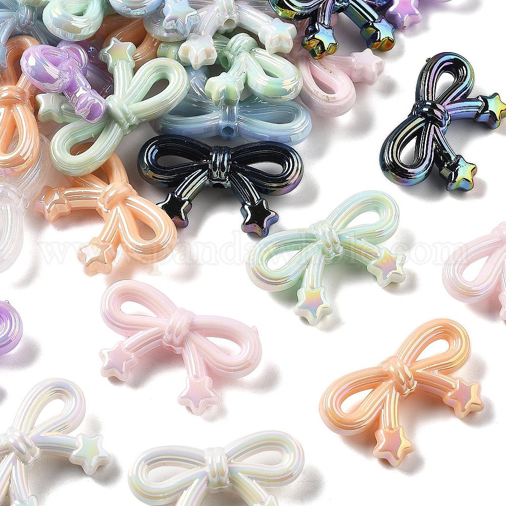 Непрозрачные акриловые бусины с УФ-покрытием, радужный, бантом со звездой