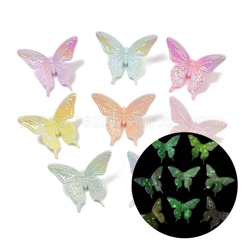 Светящиеся и УФ-покрытые непрозрачные акриловые бусины, радужный, бабочка