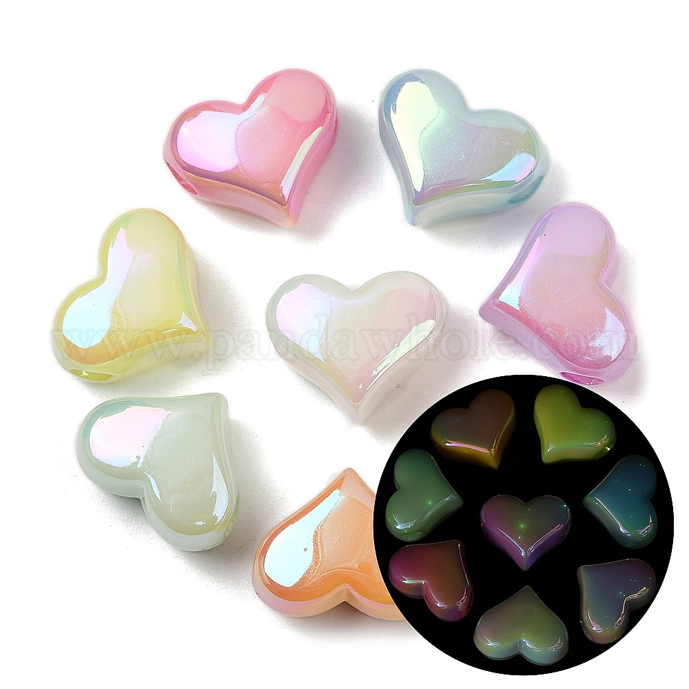 Светящиеся и УФ-покрытые непрозрачные акриловые бусины, радужный, сердце
