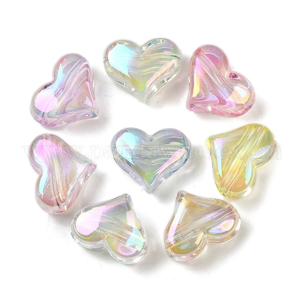 Уф-покрытие прозрачные акриловые бусины, радужный, сердце