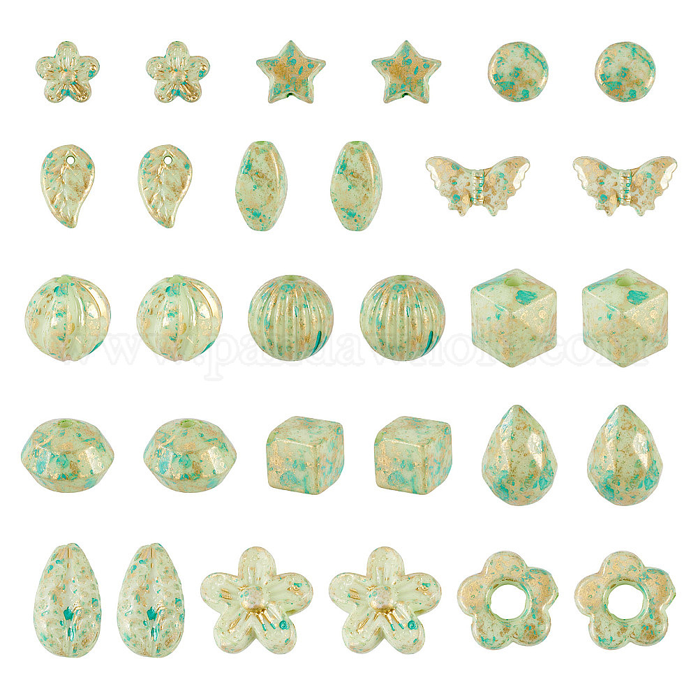 100g непрозрачные акриловые бусины, золотой металл обвитыми, разнообразные