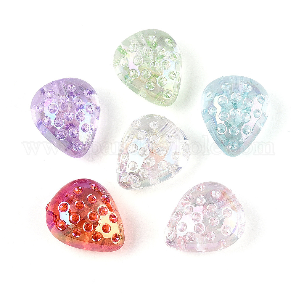Уф-покрытие прозрачные акриловые бусины, радужный, половине просверлил, клубника
