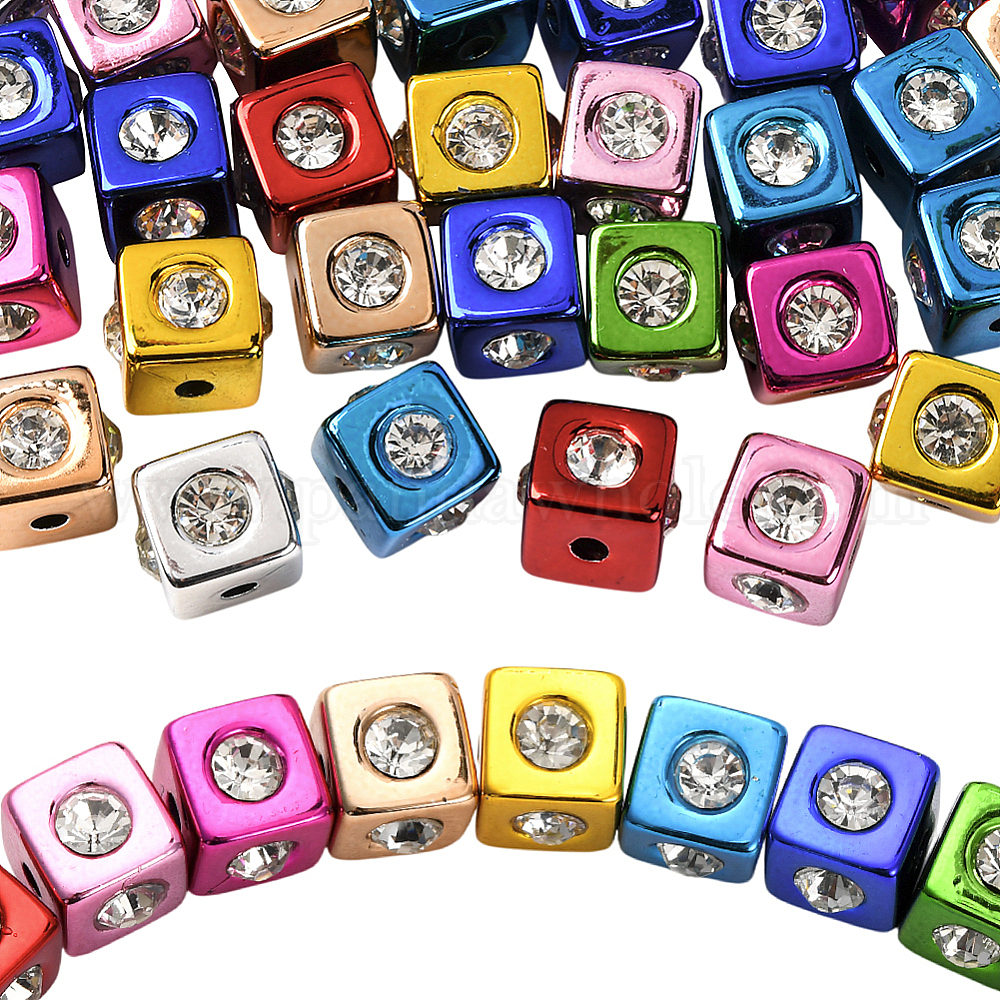 30 акриловые бусины с УФ-покрытием, со стразами, кубические (035C8H)