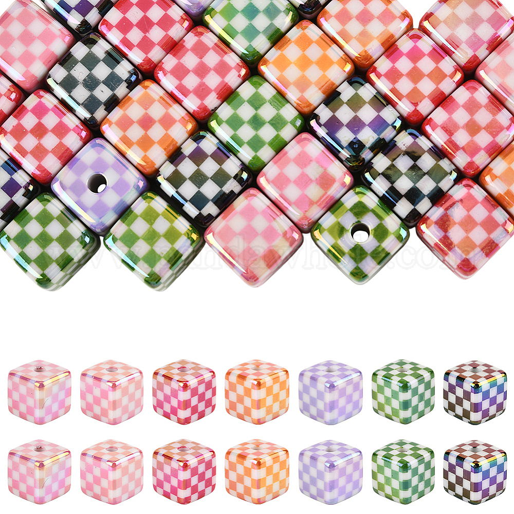 • (52) Непрозрачная лаванда 30 шт. непрозрачные акриловые бусины с УФ-покрытием, радужный, куб с сеткой, разноцветные, 14.9x14.9x14.9 мм, отверстие : 3.8 мм