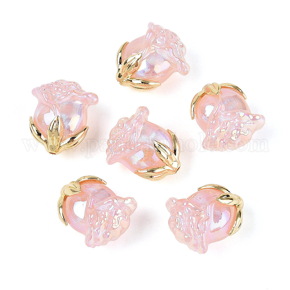 Непрозрачные акриловые бусины с УФ-покрытием, радужный, роза, с фурнитурой из золотого сплава и блестящей пудрой