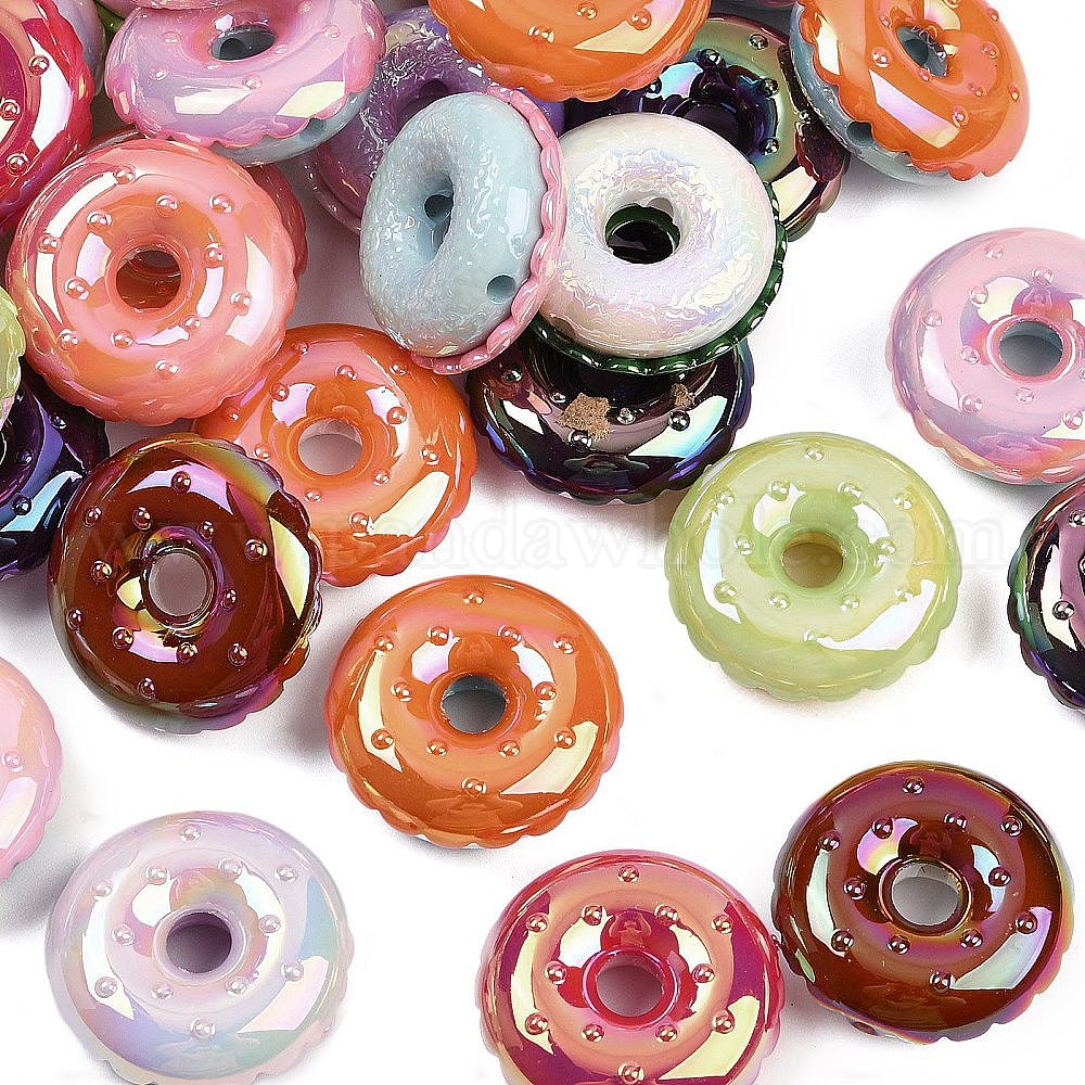 • (52) Непрозрачная лаванда Непрозрачные акриловые бусины с УФ-покрытием, радужный, Dount, разноцветные, 28.5x11 мм, отверстие : 2.5 мм
