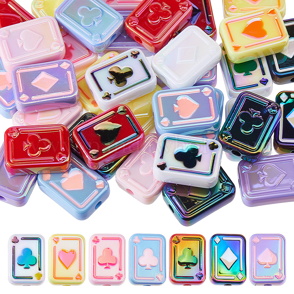 35 шт. 7 цвета УФ-покрытие радужные переливающиеся акриловые эмалевые бусины, покер