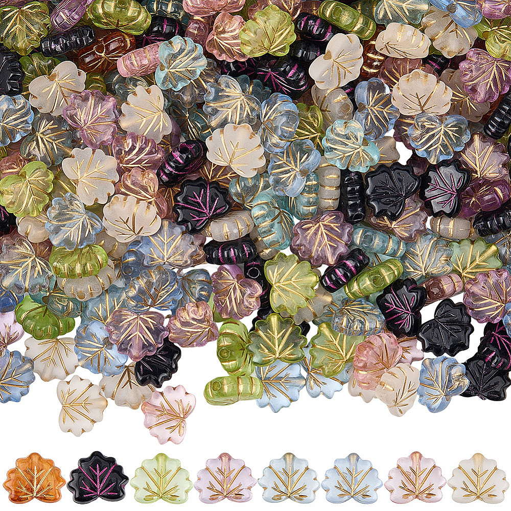 320шт. 8 цветов акриловых бусин, золотой металл обвитыми, лист