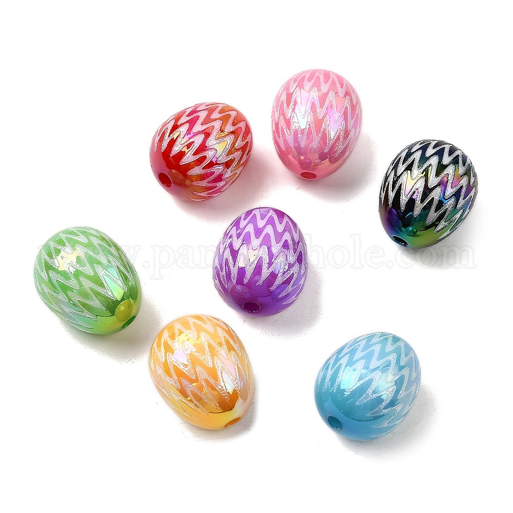 Непрозрачные акриловые бусины с УФ-покрытием, радужный, яйцо