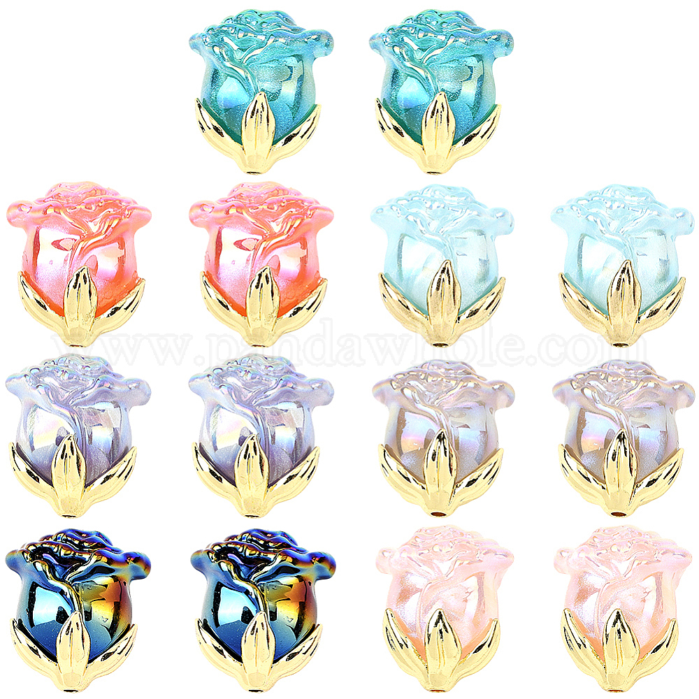 14шт 7 цвета УФ-покрытие непрозрачные акриловые бусины, радужный, роза, с фурнитурой из золотого сплава и блестящей пудрой