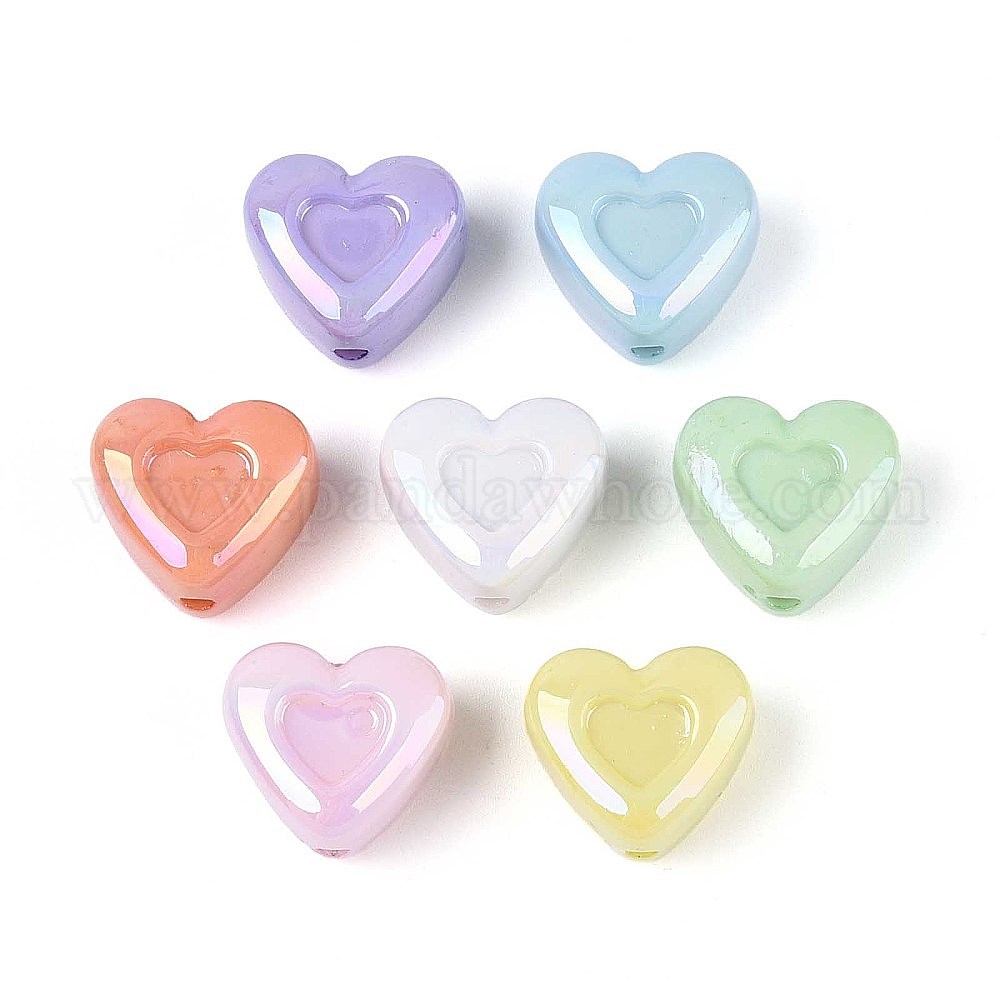 Непрозрачные акриловые бусины с УФ-покрытием, радужный, сердце