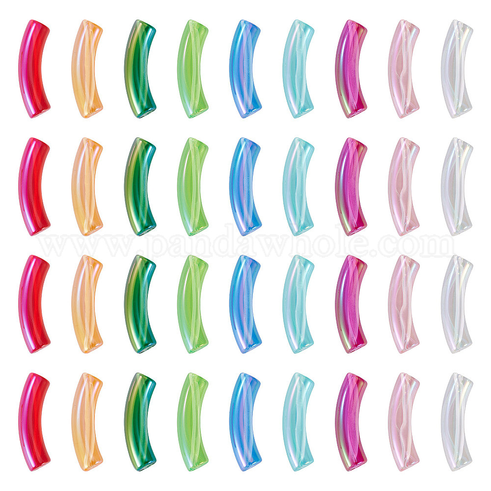 50прозрачные радужные переливающиеся акриловые бусины с УФ-покрытием, изогнутая трубка (036GBG)