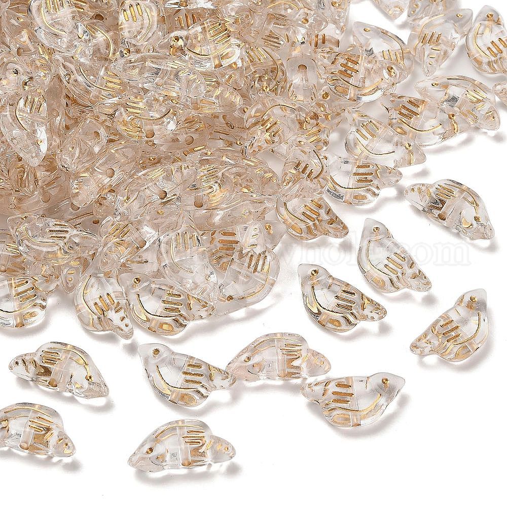 Прозрачные акриловые бусины, золотой металл обвитыми, птица
