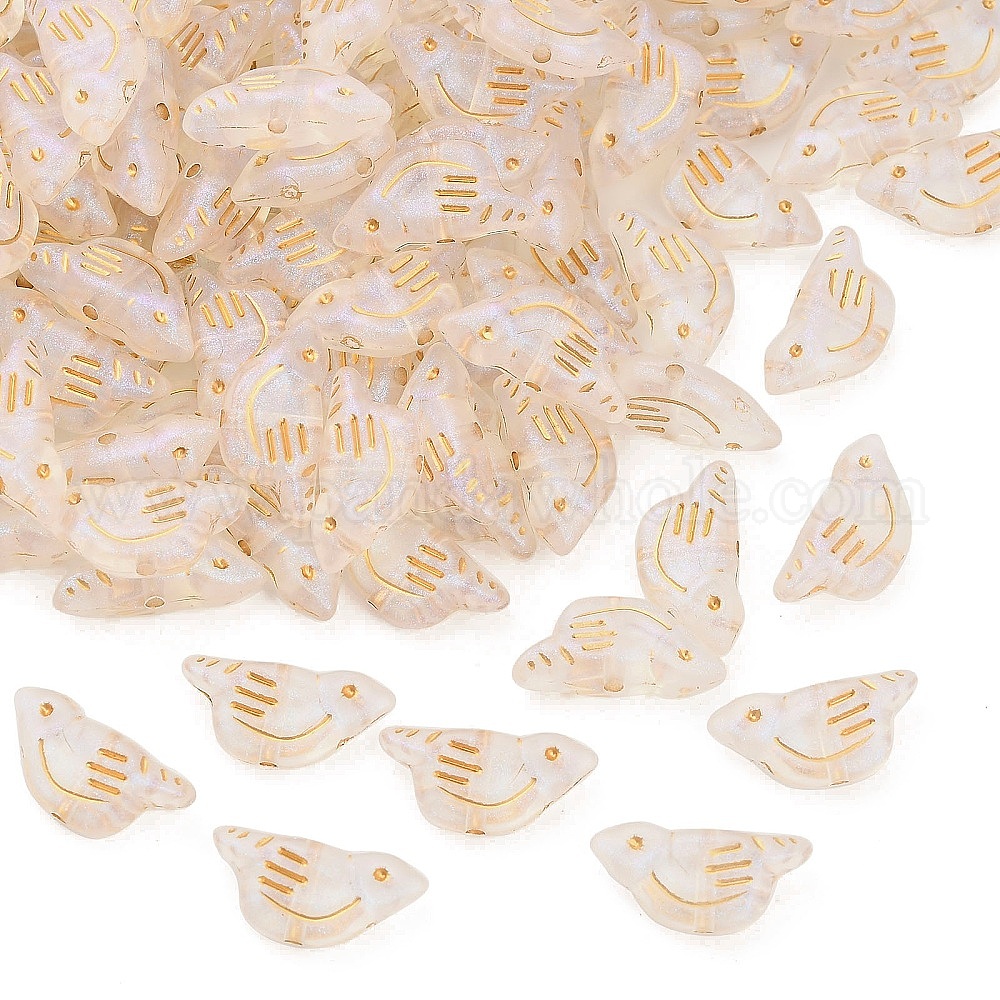 Прозрачные акриловые бусины, золотой металл обвитыми, птица, с блеском порошок