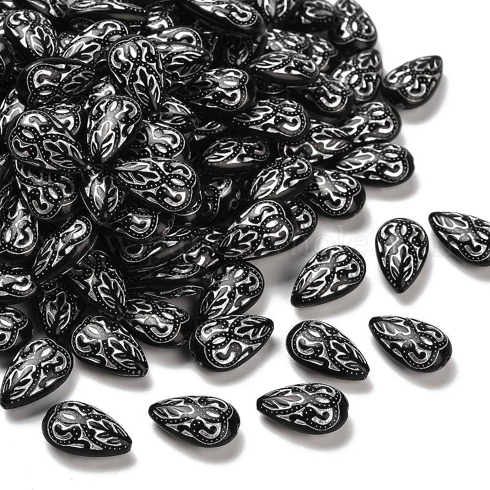 • Черный Непрозрачные акриловые бусины, серебристого металла, обвитыми, слеза, чёрные, 18x11.5x7 мм, отверстие : 1.6 мм, Около 555 шт / 500 г