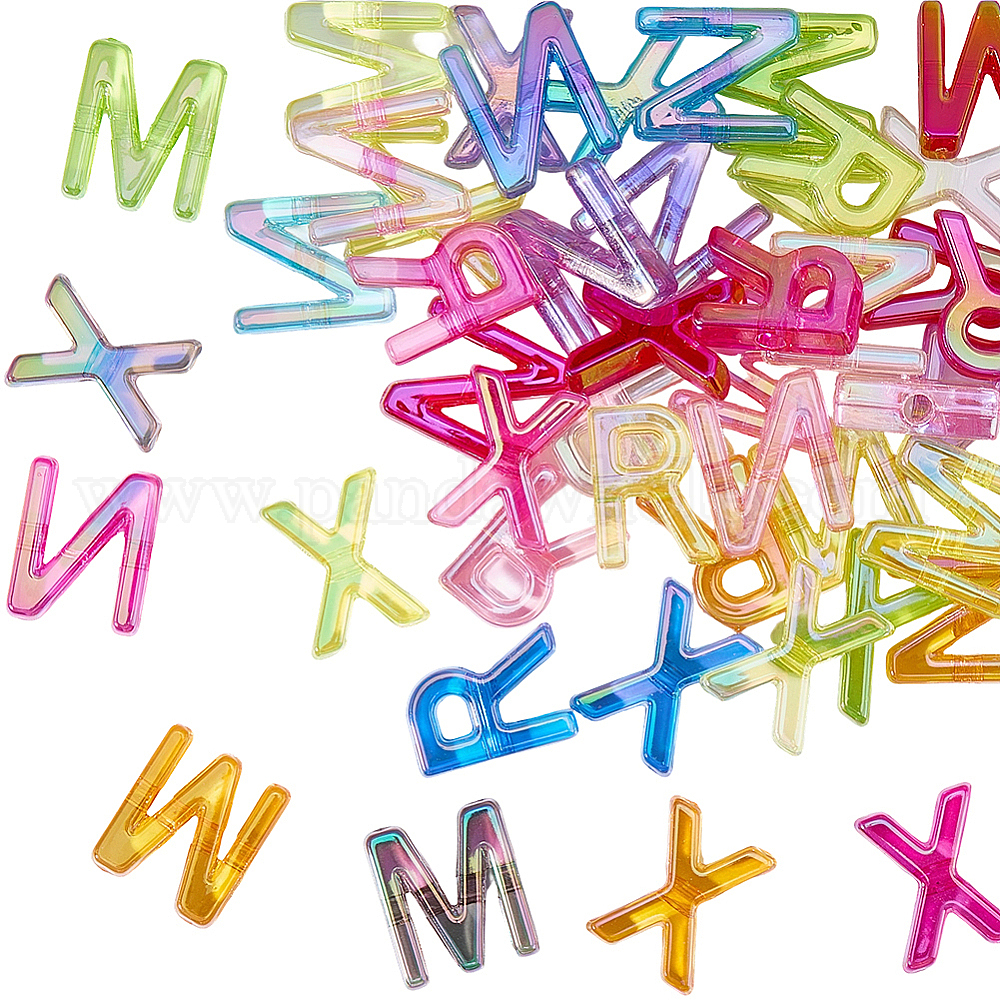 • (52) Непрозрачная лаванда 50прозрачные акриловые бусины с УФ-покрытием, буквы, разноцветные, 19~20x14~16.5x6 мм, отверстие : 3~3.5 мм
