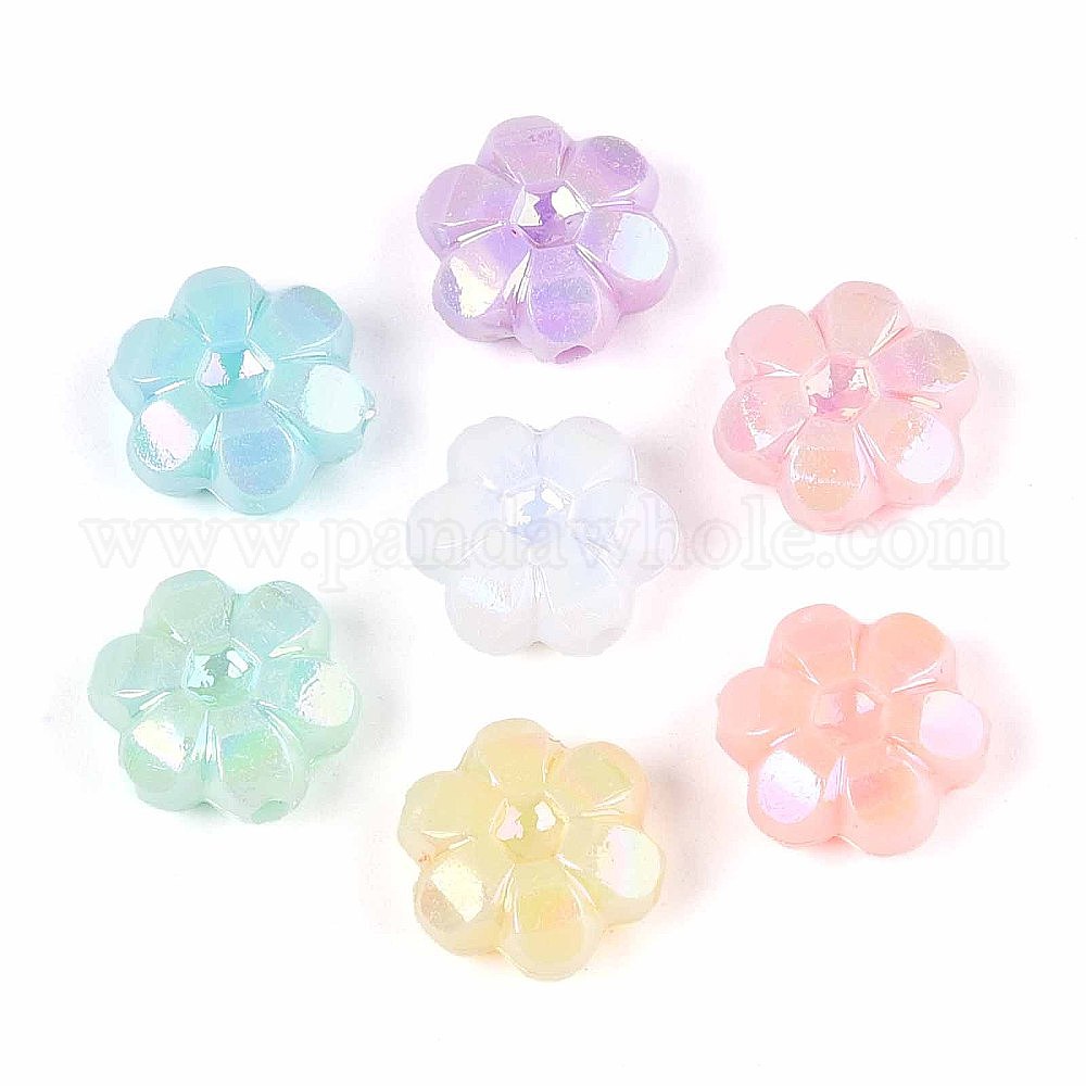 Непрозрачные акриловые бусины, с покрытием AB цвета, цветок (0383ZS)